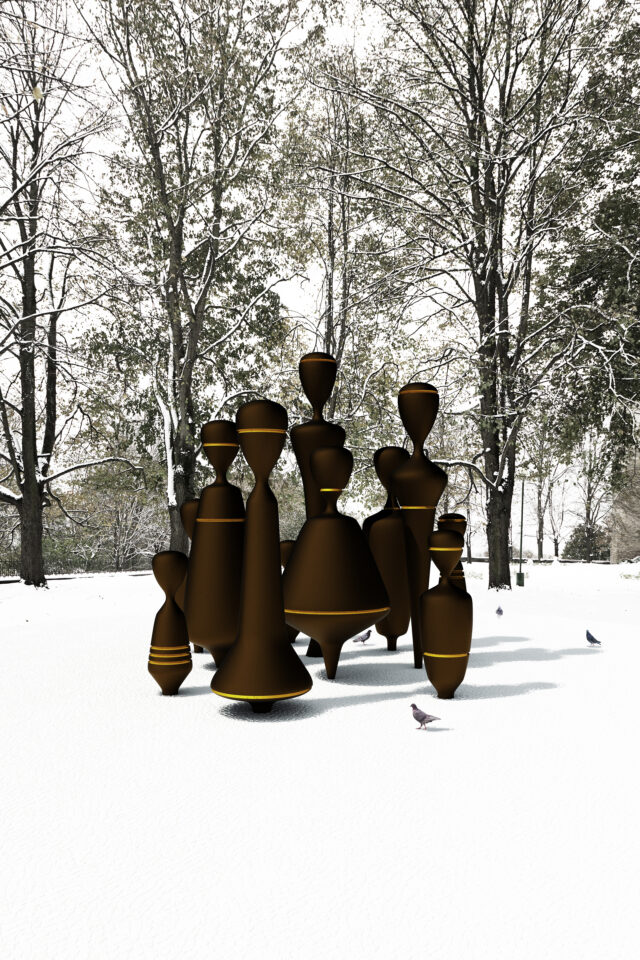 Skulpuurid on asetatud selliselt, et mõne keerukuju vahelt võib-olla ei pääsegi igaüks ei läbi – tihedalt, et teiste vahel tunneks ka üksik uitaja meie inimesi.