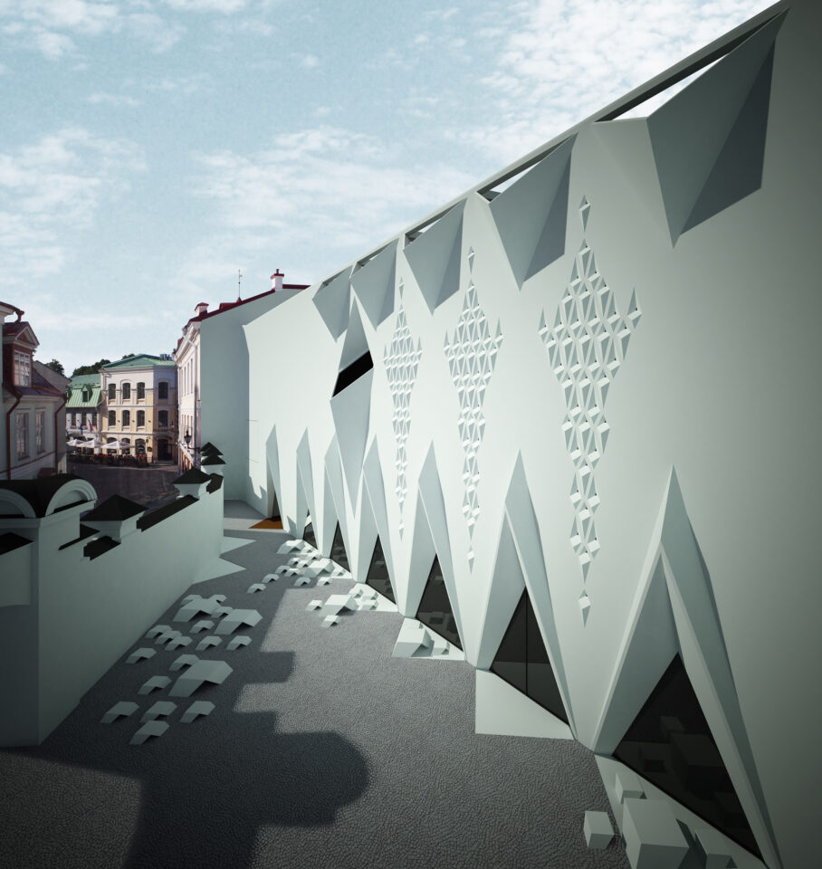 The theatre is located in the Old Town of Tallinn. The design deals with the issues of historic environment in a perspective of mimicry, examining necessity for similarity and opportunities of mimicry.