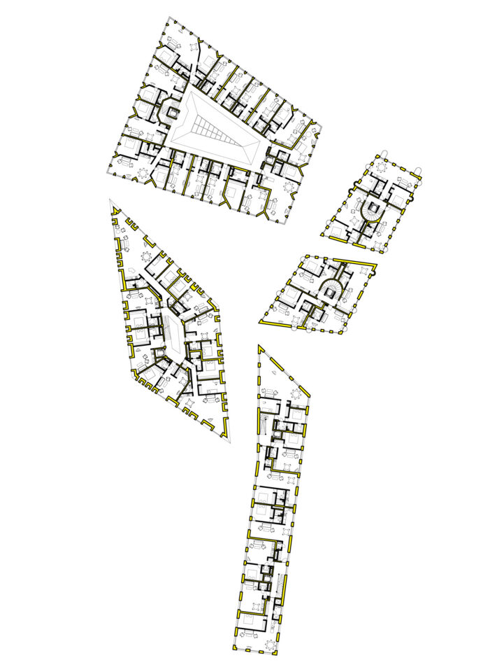 Квартал Ротерманни представляет собой бывшую промышленную территорию с ценной и уникальной средой в самом сердце Таллинна. Новые здания создавались с мыслью избежать сплошного монотонного объема. Пешеходные дорожки, проходящие между зданиями, ведут к центральной площадке, поднятой до уровня второго этажа.