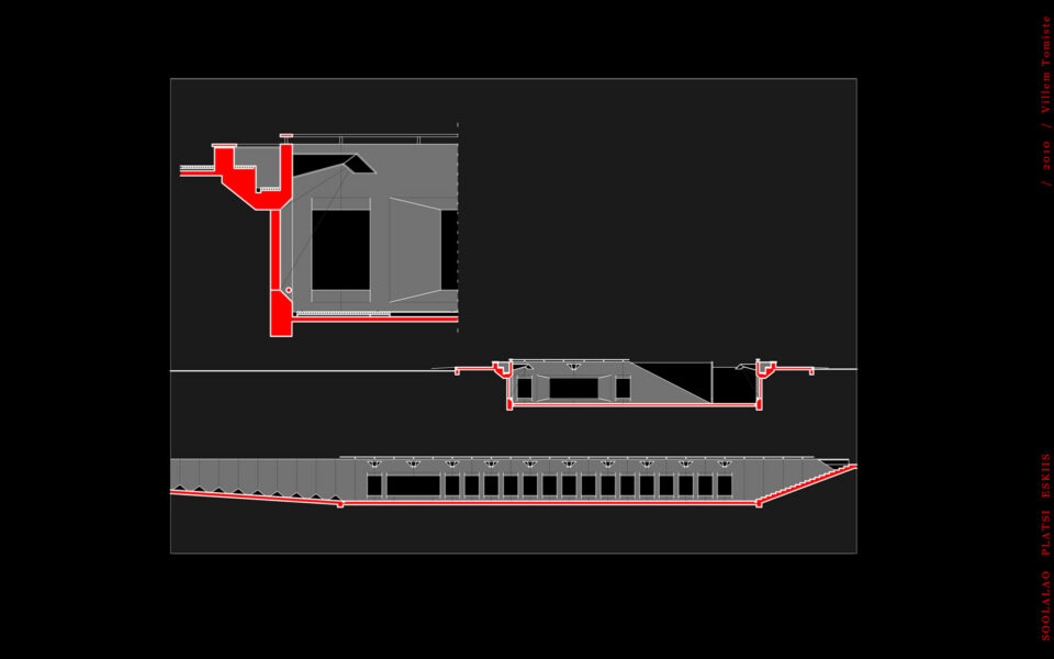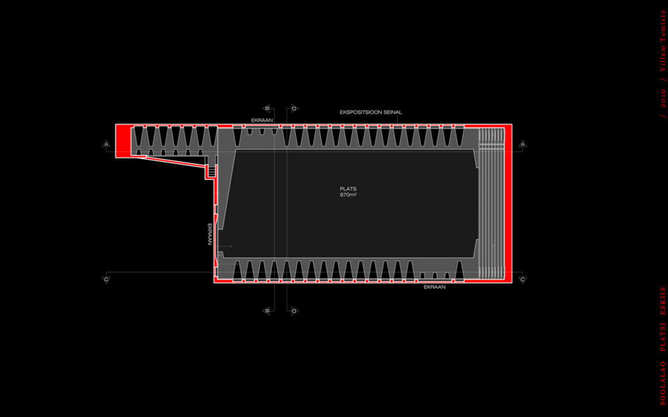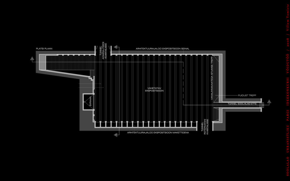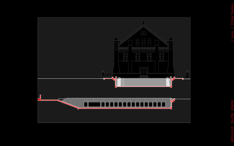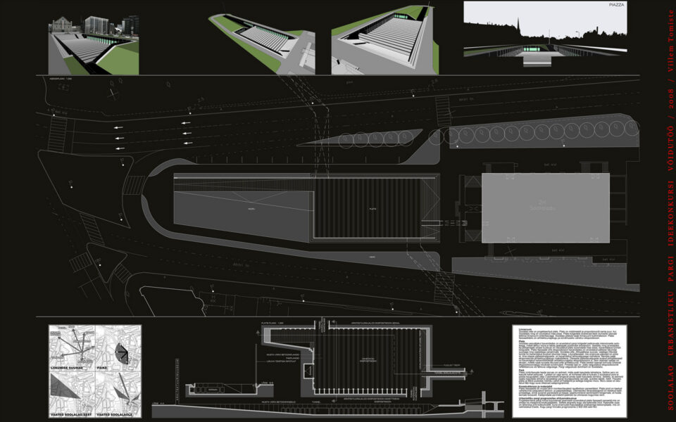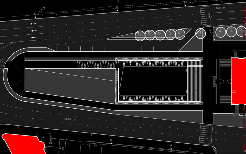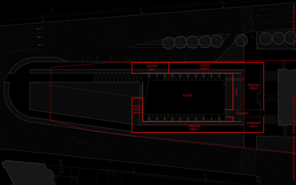 The Museum of Estonian Architecture is located in the centre of Tallinn. Designed plaza creates an intimate space for interaction between two intense streets. The square is lowered below the street level, thus creating walls around the plaza. The walls can serve as display surfaces for expositions while containing the necessary programmatic spaces for the extension of the museum.